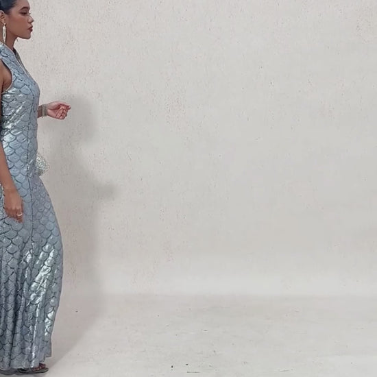 - Design: Collared, Sleeveless, Mid-Waist, Mermaid Skirt, Fish Scale Sequins, Fitted, Soft Knit Lining