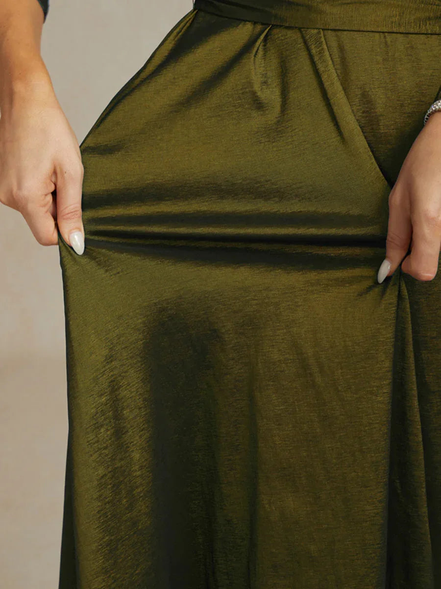 Mid-Rise Elastic Waist Wide-Leg Chiffon Pants