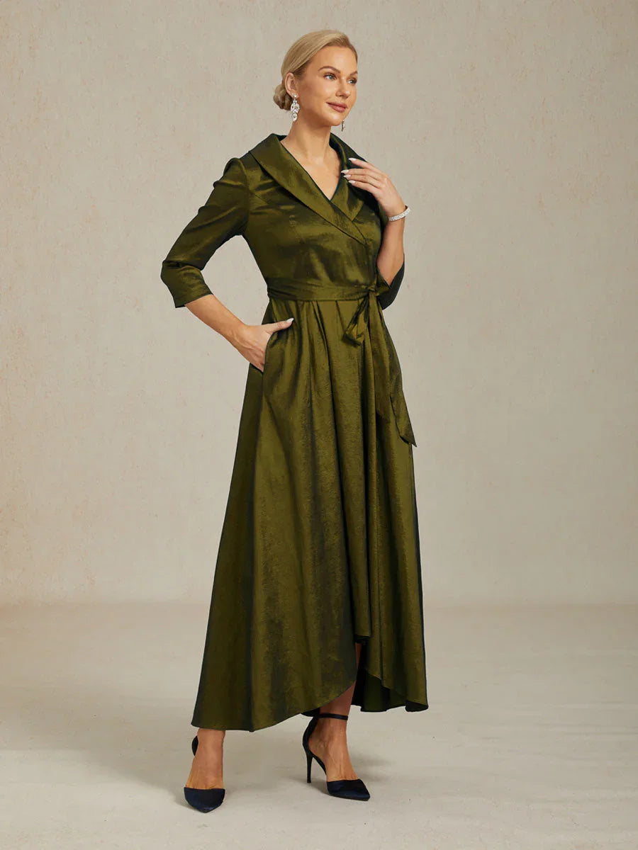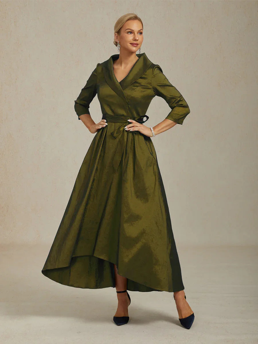 Turn heads in this collar stretch taffeta dress, designed with a playful high low hem and a flattering tie belt that cinches your waist beautifully. Crafted from luxurious stretch taffeta, it hugs your curves while offering comfort and elegance. Whether you¡¯re stepping out for a wedding, evening party, or a formal dinner, this dress is your go-to for timeless sophistication. Add heels and a bold necklace to complete the look, and you¡¯re sure to shine wherever you go.