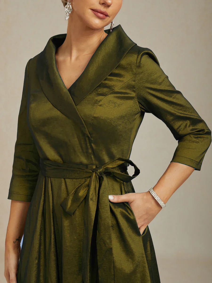 Stretch Taffeta Cocktail Dress with Tie Belt