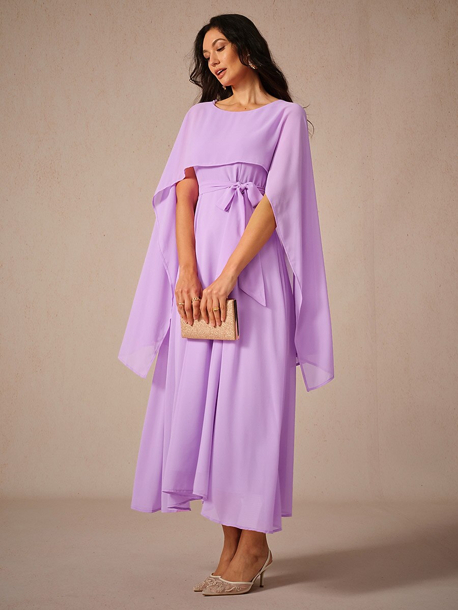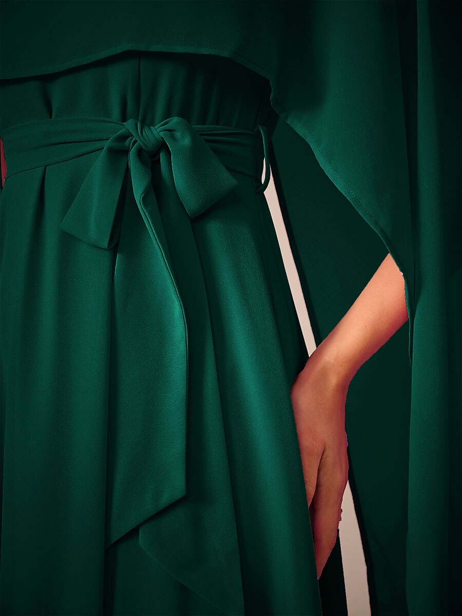 This versatile two-way sheer ankle-length chiffon dress is the perfect combination for formal occasions. The sheer chiffon shawl can be worn in two different ways, adding versatility and style to your ensemble. The ankle-length chiffon dress completes the look with its flowy, graceful silhouette. Together, they offer a sophisticated and flattering outfit for weddings, cocktail parties, or any evening event.