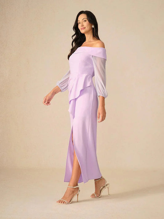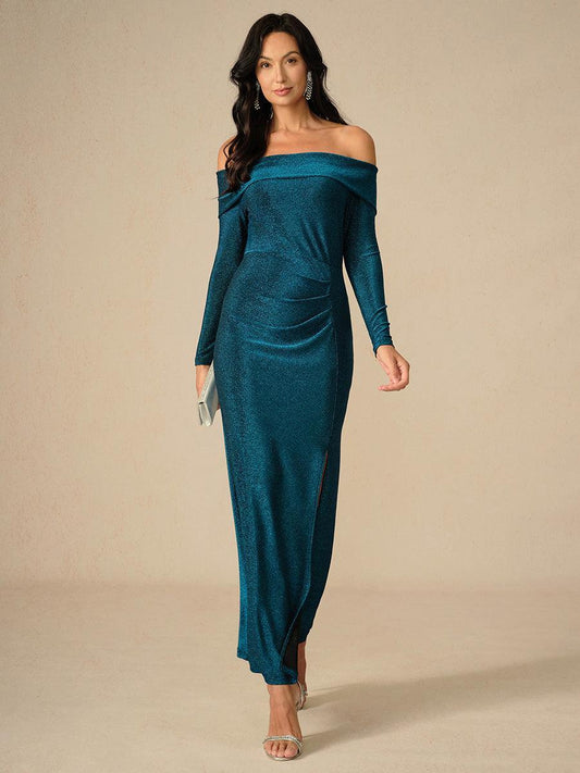 Long Stretch Velvet Evening Dress with 3/4 Sleeves