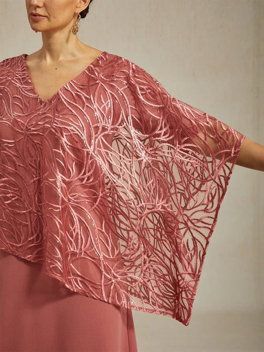 Elegant Knee-Length Lace Dress With Sheer Chiffon Jacket