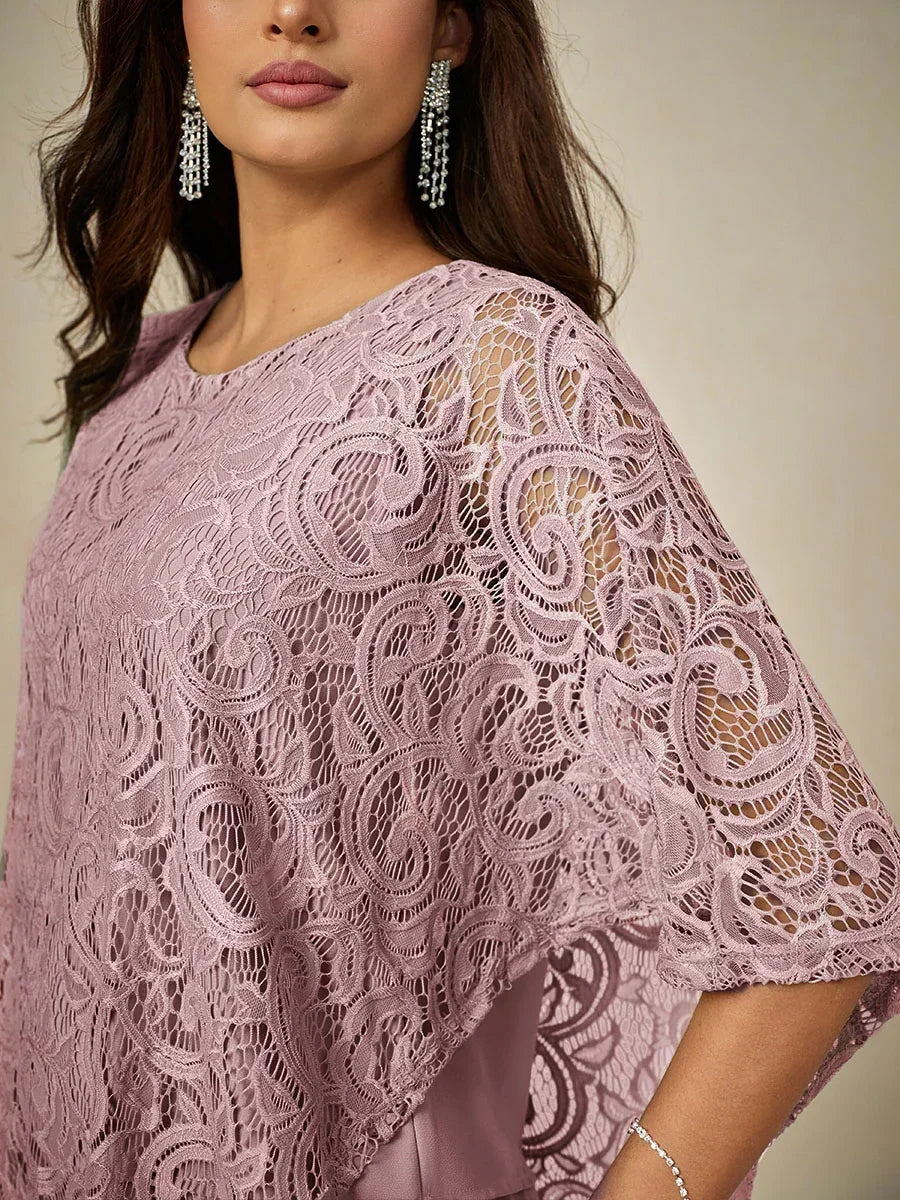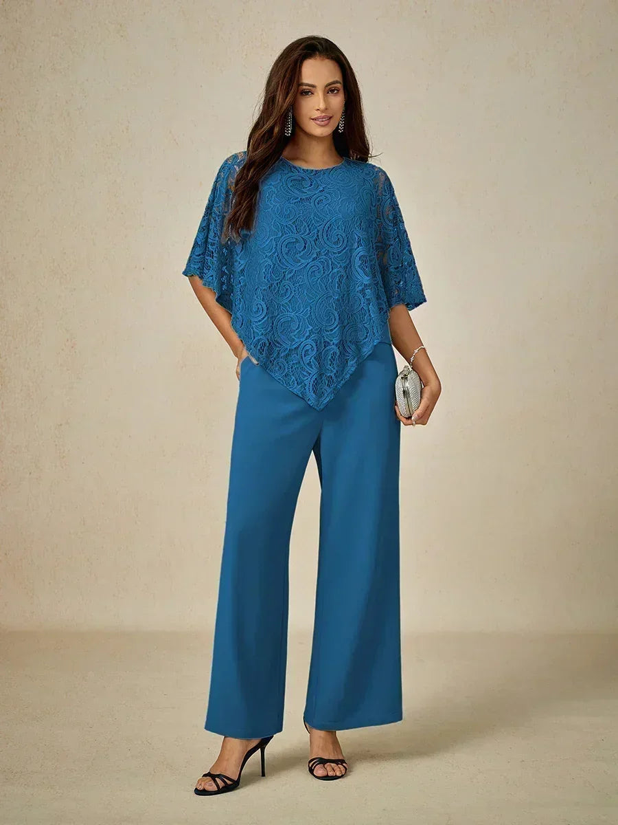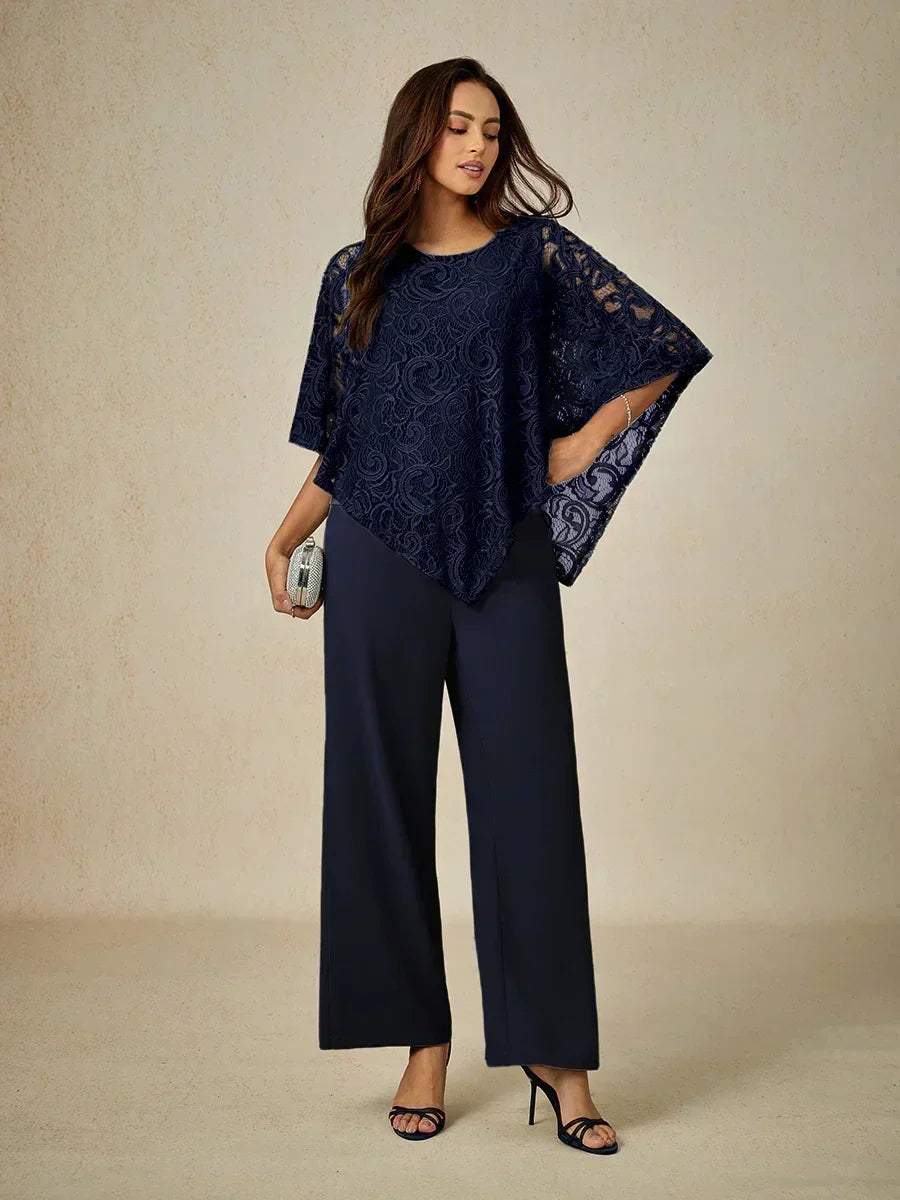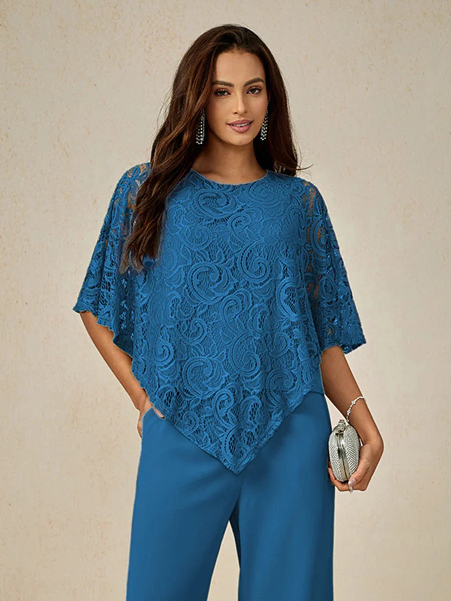 這款輕盈蕾絲上衣採用寬鬆剪裁,配有蝙蝠袖半袖及精緻的蕾絲圖案。設計上採用經典的圓領與寬鬆版型,兼具舒適與優雅。清新的色調非常適合春夏季節,無論搭配同色褲裝或休閒造型皆宜。理想用於日間外出、休閒聚會或半正式場合