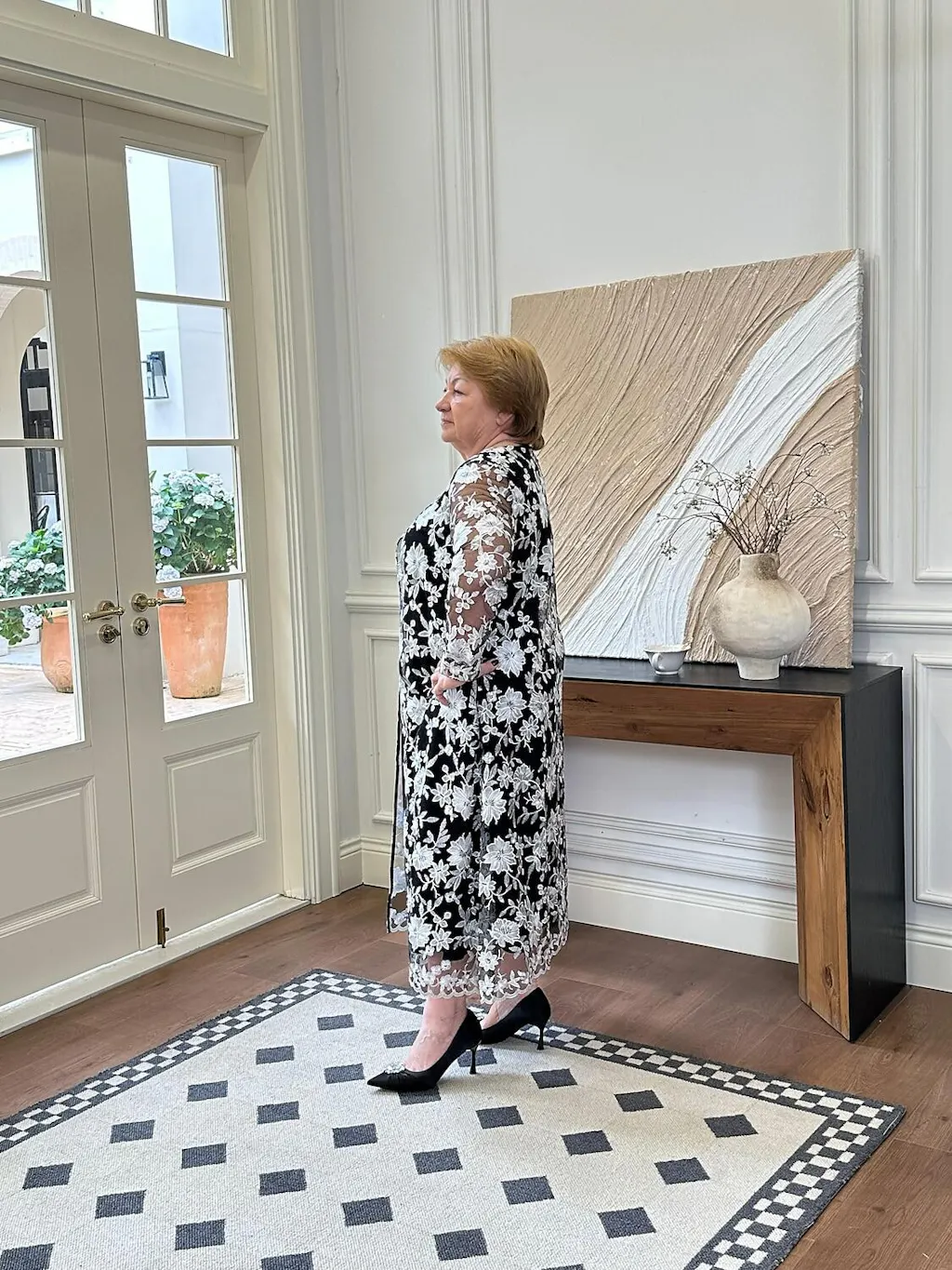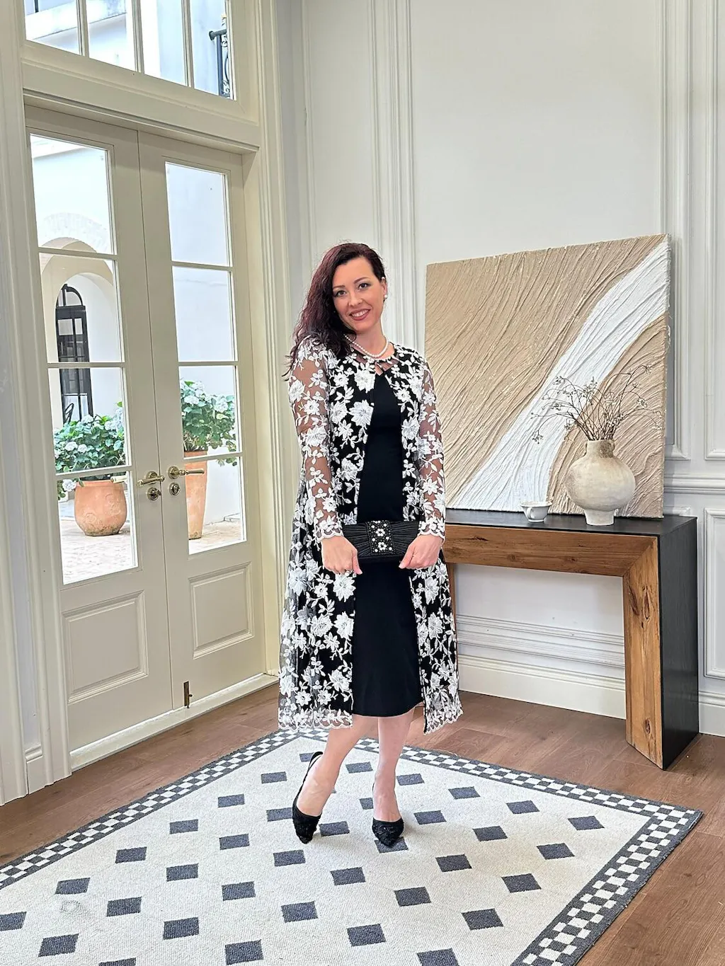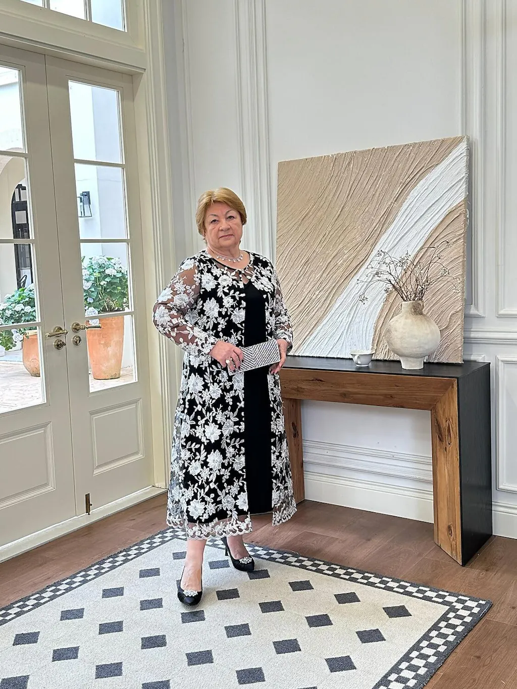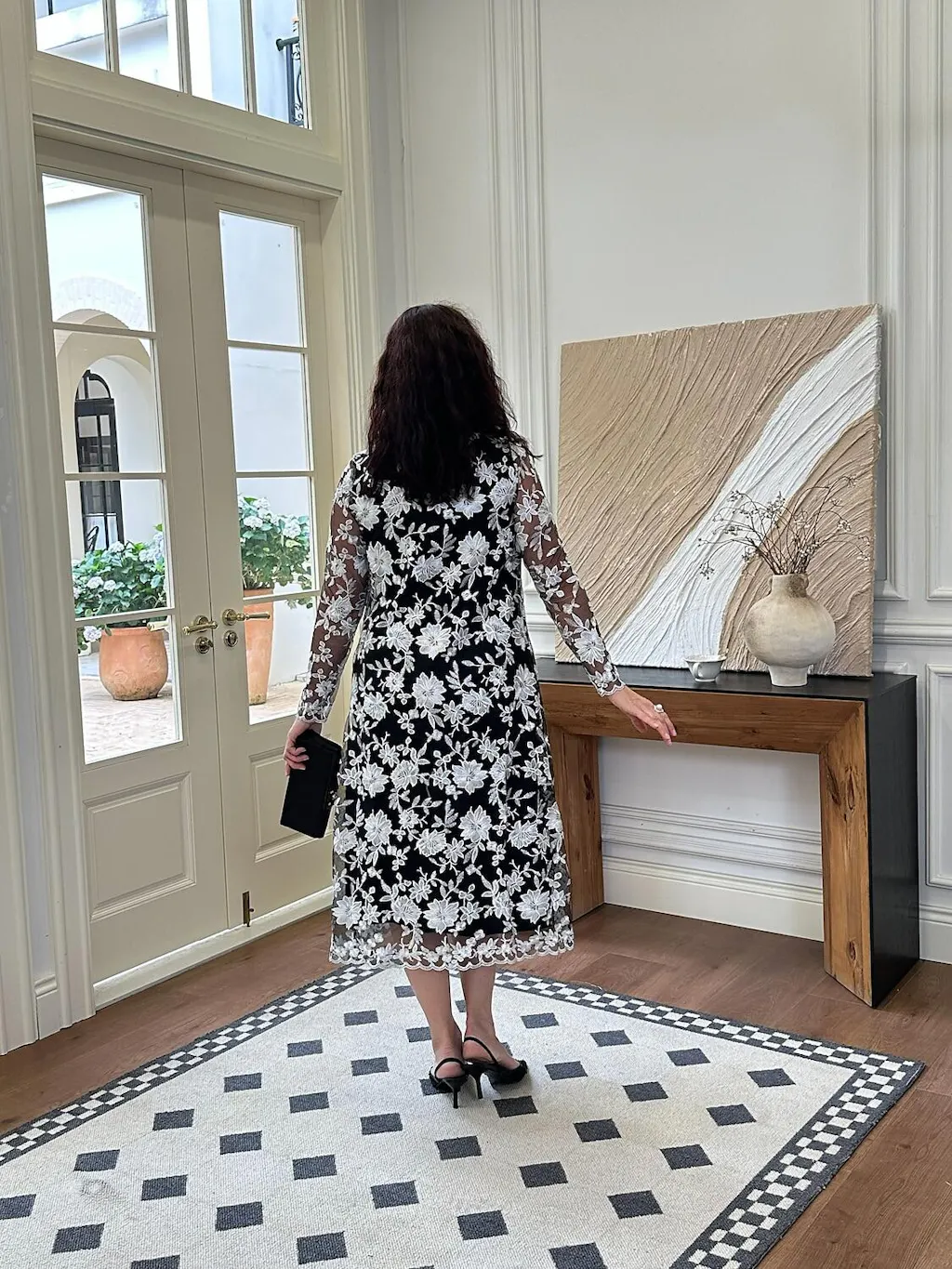Floral Chiffon A-Line Dress with Lace Sleeves