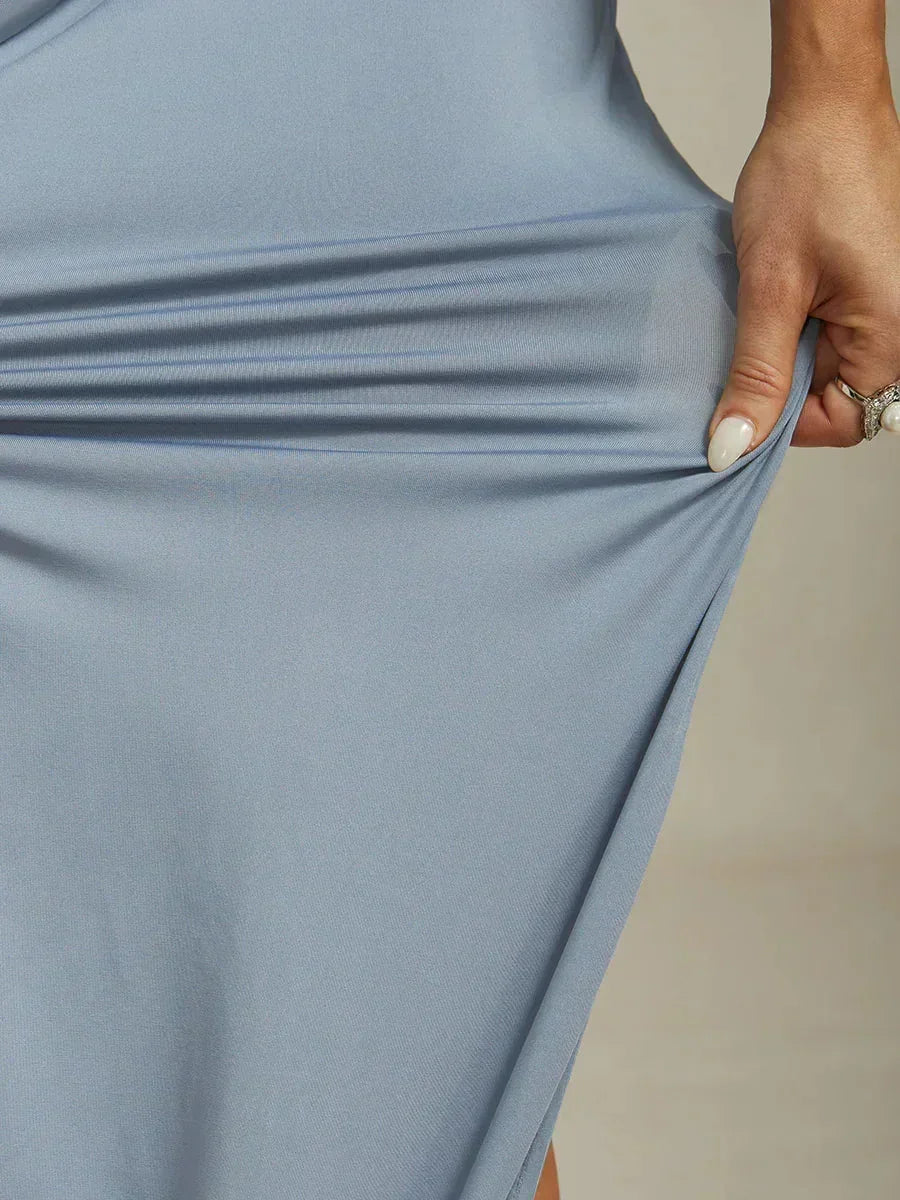 Step into pure elegance with the Beaded Halter Dress. This stunning dress features a delicately beaded halter neckline and a flowy cascade ruffle skirt designed for movement and grace. Crafted from stretch mesh fabric with a soft inner lining, it offers both comfort and elegance all night long. Ideal for formal evenings, weddings, or prom, this dress is made for dancing, turning heads, and unforgettable memories.